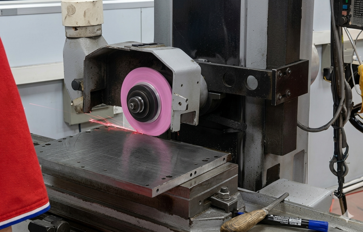 Vật liệu mài: Với thép hợp kim, thép SKD, hãy ưu tiên đá PA (Pink Alundum). Nó giữ form tốt và cực kỳ bền.